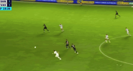 第61分钟,内马尔再进1球。瓦斯科达伽马防线出现致命失误,内马尔得球,大步流星趟球杀入禁区,左脚轻巧挑射,皮球划出一道弧线越过门将头顶,随即下坠窜入网窝!